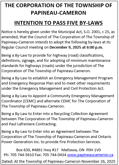 • Papineau Cameron Township Logo Papineau Cameron Township Logo Papineau Cameron Township Logo